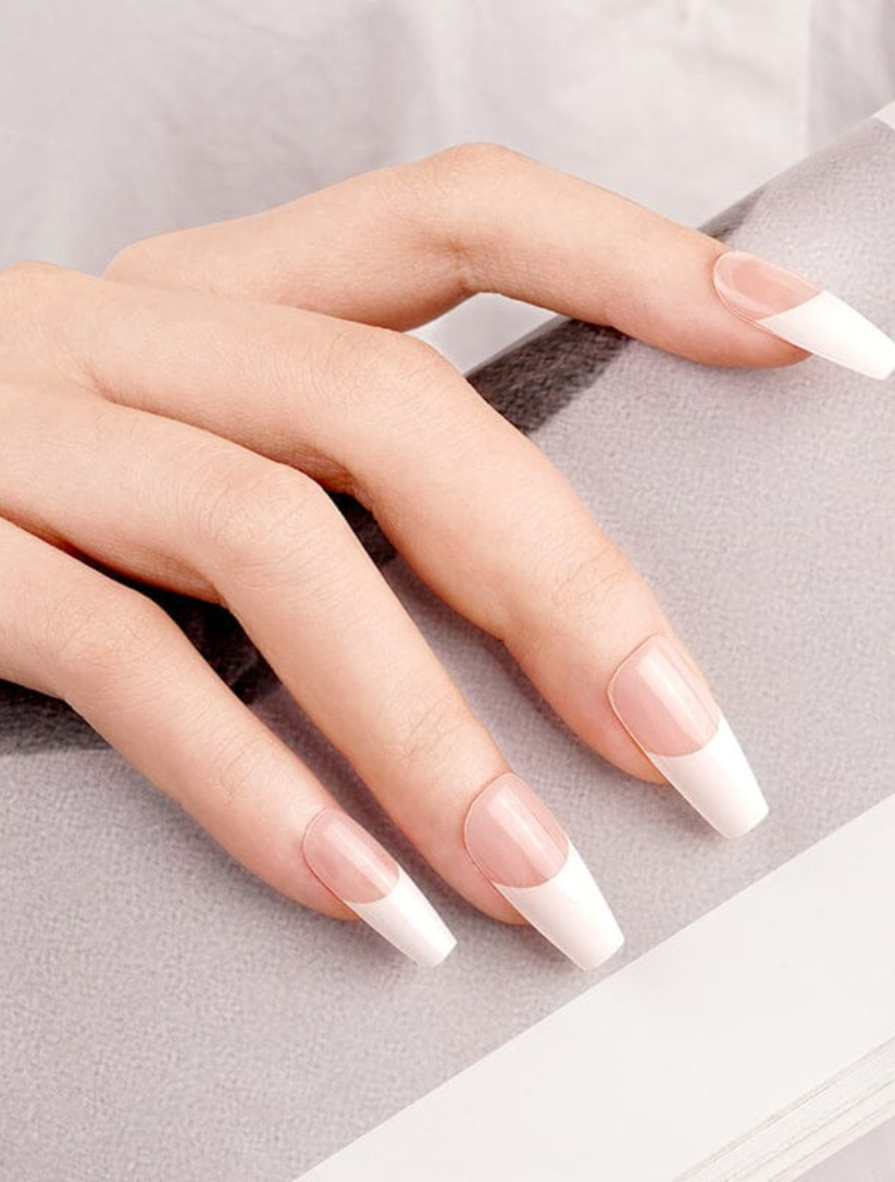 Varje förpackning innehåller 20 remsor i 8 olika storlekar, vilket ger alternativ för alla nagelformer. Remsorna är flexibla, så om du är osäker, välj en mindre storlek. Om du ändå inte hittar rätt passform kan du klippa remsorna till önskad storlek eller försiktigt tänja ut dem. Vanligtvis räcker en förpackning till 2–4 manikyrer.